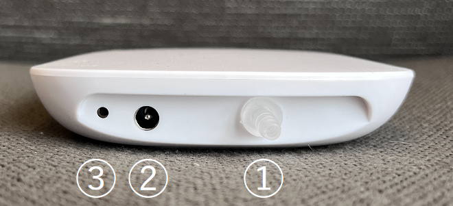 - センサー設置後、ACアダプタをコンセントに接続します。注意 センサー設置前に電源を入れると初期の環境校正がセンサーが設置されていない状態で行われてしまいますので、センサー設置後に電源を入れるようにしてください。