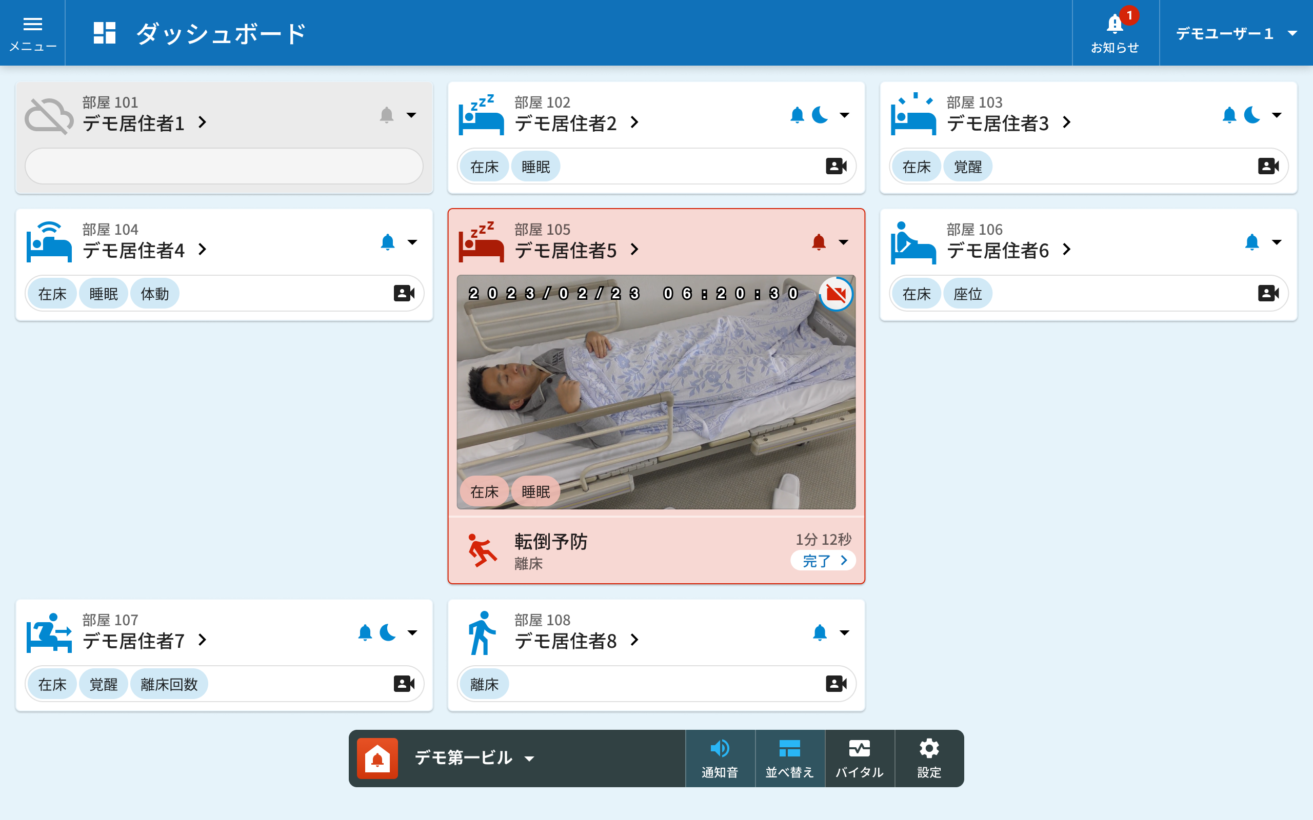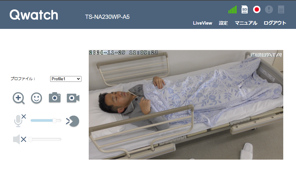 お知らせ時以外でもカメラアイコンをクリックするとカメラ画像を確認できます。30秒間表示後自動的に消えます。カメラ画像をクリックすると表示時間が30秒延長されます。表示中に赤いカメラアイコンをクリックして表示を消すこともできます。