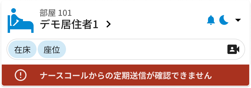 ナースコールの電源が切れていたり、圏外で通信できていない場合は以下の表示が出ます: