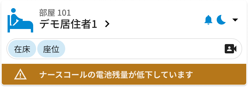 ナースコール端末のバッテリー状態や接続状態をお知らせ表示します。