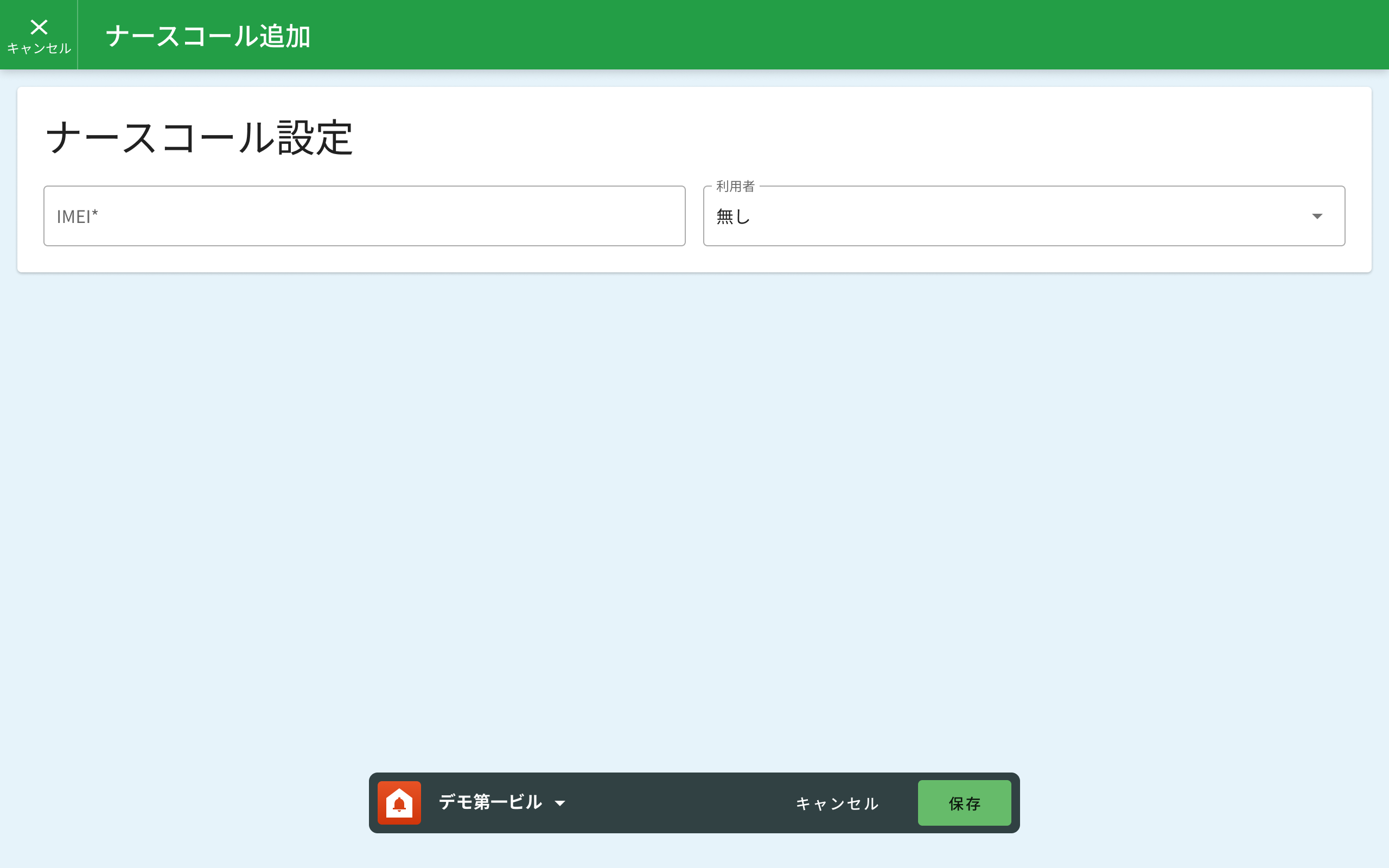 - ナースコール設定の画面のIMEI蘭にナースコールデバイスのIMEI(15文字)を入力します。